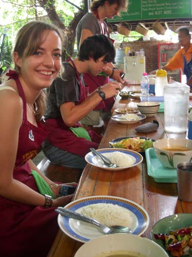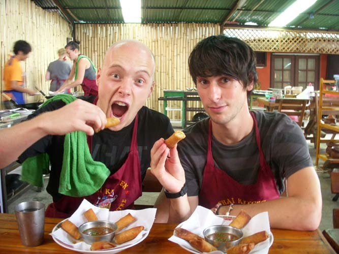 One of the things to do in Chiang Mai is one of their famous cooking courses. So we all booked up on the Sunday ready and rareing to go on the Monday morning. After being picked up by the cooking school we headed to a local market to pick up some produce to cook with. Here we went through all of the different herbs, spices and rice’s we would be cooking with throughout the day. We got to the cooking school with all our ingredients and got straight to it. We cooked 7 courses in total, and we ate them all! Great day! I cooked the following, but you had a choice of 3 meals for each course: