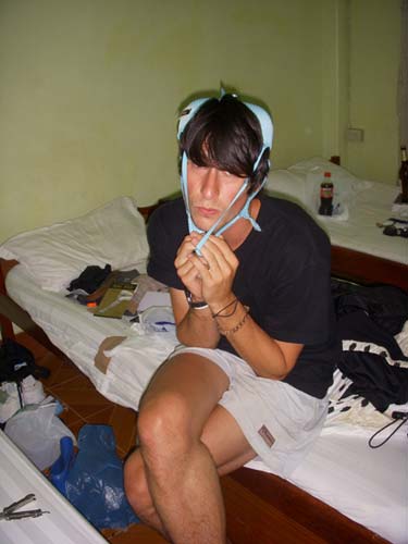 We got the coach from Chiang Mai to Udon Thani which was a welcome change to my last coach trip! We actually slep on this night bus! We arrived around 8 am the following morning (set off 8 pm) and got another bus to the border. We sorted out our visa and entered Laos quickly and easily. We got a truck for 40 BHT to the center and had a well deserved beer at 9 am! We found a place to bed and then I went to hospital. If you can call it that… it was more like a shed in the middle of a housing estate… not housing estate, more like a shed in amongst more sheds that looked slightly worse. Anyway I still have my leg… for now anyway, I dont want to make too many jokes just in case they actually cut it off!