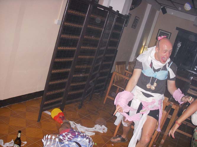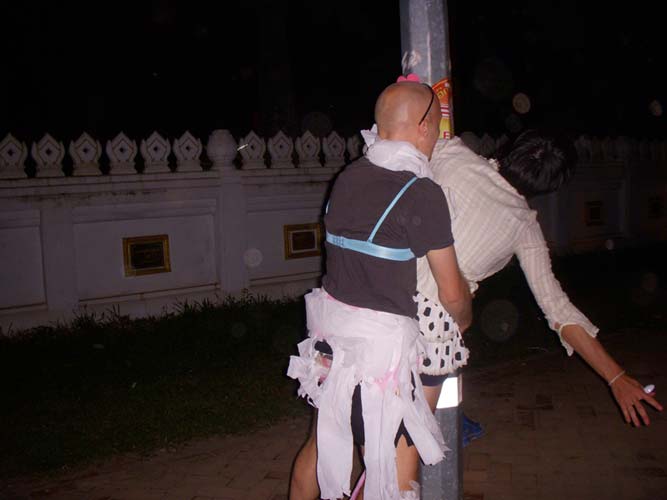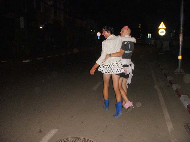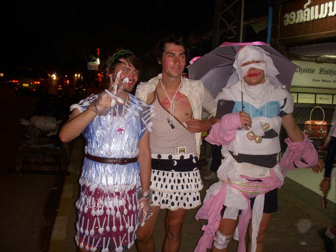 We hired push bikes and headed for the Vietnamese Embassy to get our visas. Closed. We had been invited to a Halloween party at a bar for the night so decided we would do fancy dress, I had to dress Ed, Ed dressed Jase and Jase dressed me! We went to a local market and split up to find our humiliating outfits… we returned to the room to reveal who had who (we picked out of a hat) and what we had to wear. I had to go dressed as a Yummy Mummy, Ed as a Ladyboy and Jase as Little Spoon! Needless to say we got pretty drunk in a bar with the lights on and music on low… so much for the promise of party! We still made it a good night and met some nice people. (Images are on FB)