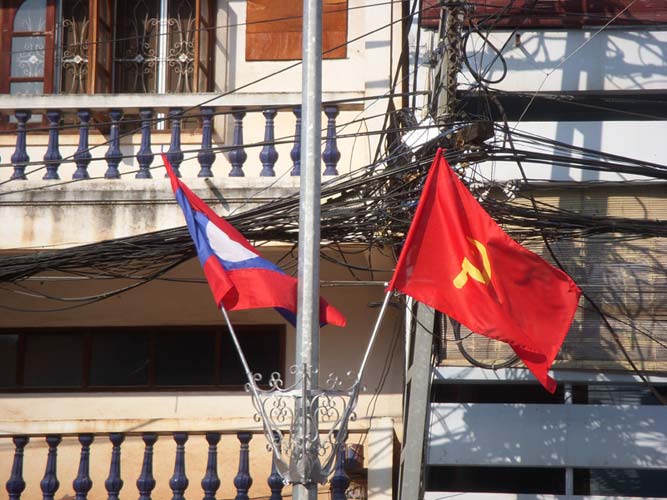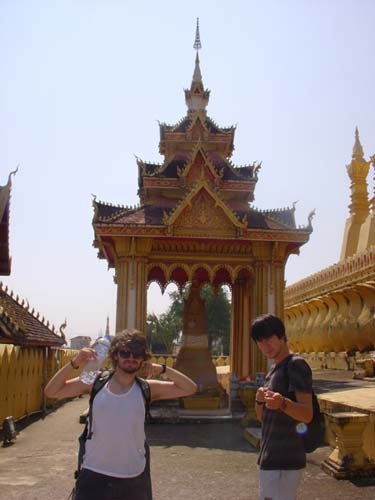 I then had a little sleep before hitting the pop with the lads. We got pretty spondugled and thought it would be wise to buy a beer from the shop and drink it right on the border… the border is the Mekong river and Thailand is now on the other side! After a few minutes a bike pulls up with 2 lads on… one of them had what looked like an AK-47 rifle over his shoulder. SHIT! So we got shouted at in Laos (the language and i suppose the place!) and when they found out we were English the one without the gun rode off to find an English speaker.
