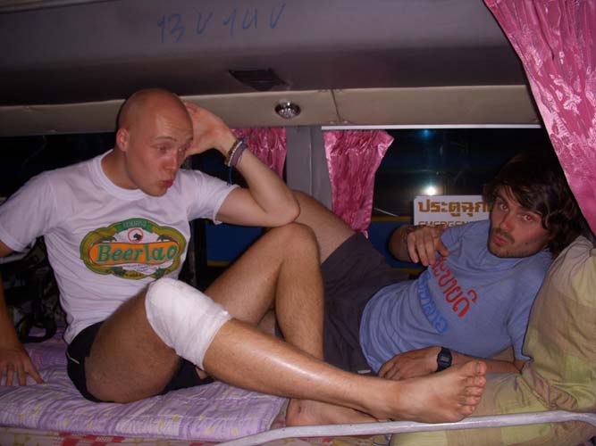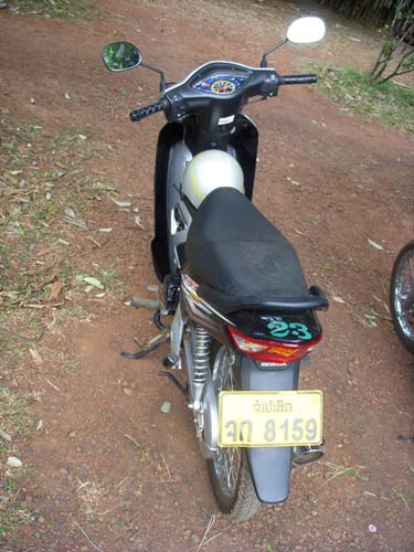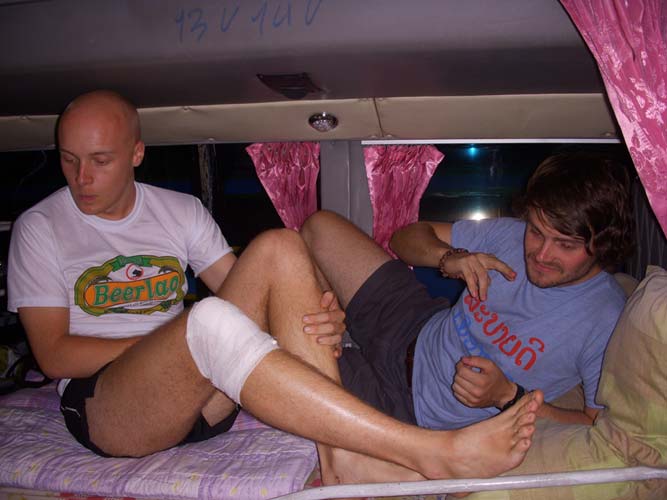 We got a boat then minibus to Paksay, we almost hit a cow on the way! We scoped out motorbikes for the following day, no Autos! Manual bikes only, you have to learn some time! My leg by the way, you can still see the bone in the middle, well near enough to the bone for me to keep moaning on about it!