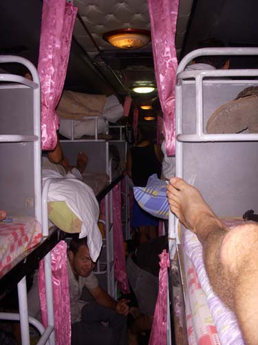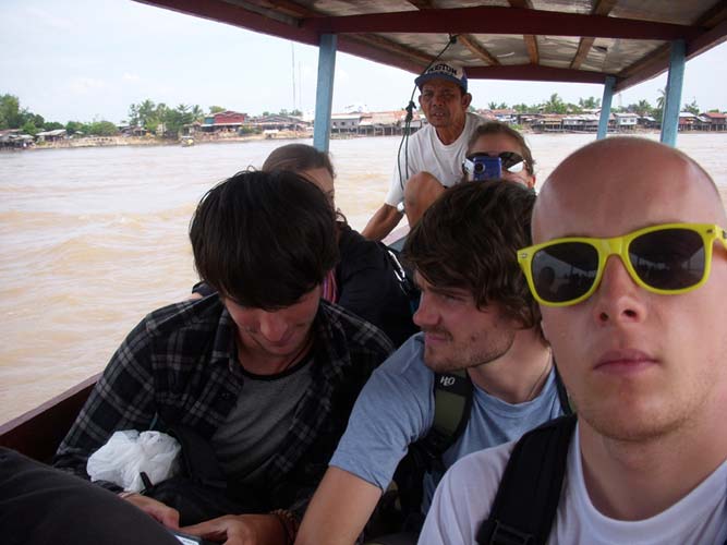 The beds were the tightest beds ever for one person, but wait a minute, we have to share! Me and Jase got paired up leaving Ed to spoon a very camp American guy! haha Me and Jase watched Matrix on my iPhone then called it a night. We got zero sleep! Mainly for the fact we were on top bunk and every time we went round a corner I was trying not to fall flat on the floor! Got to Paksay around 6.30 AM ready for the 4 hour seated bus journey to the 4000 Islands. I looked around for my bag, shit! Where was it, I hope it’s not been left behind! I look round to see it on the top of a random Tuk Tuk going off into the town of Paksay! Just in time I rescued my bag off the top! Phew.