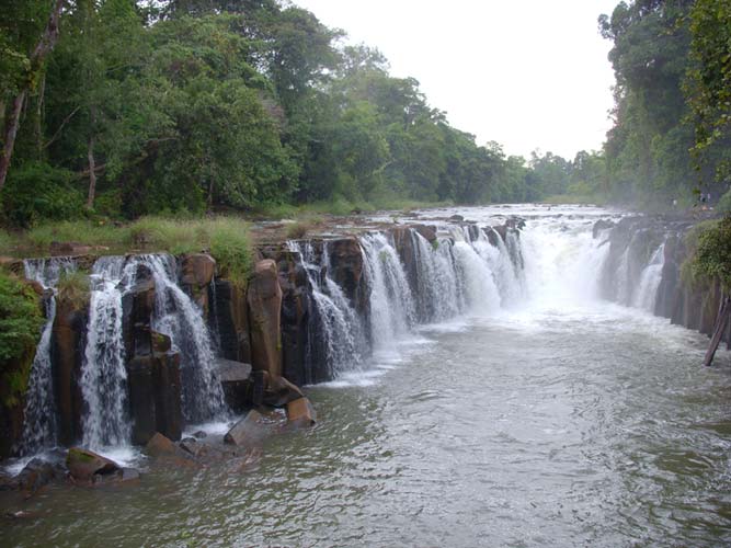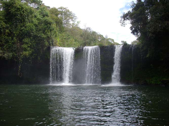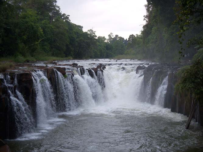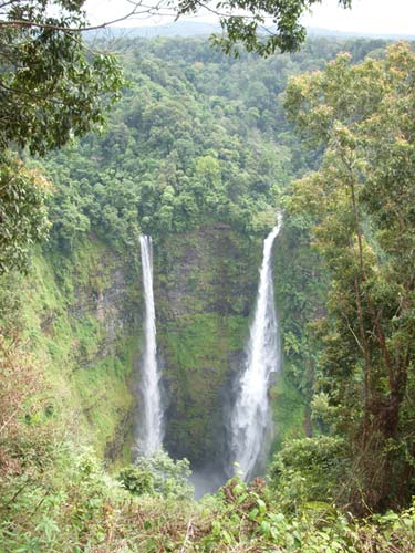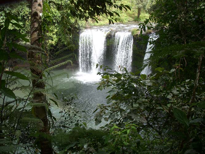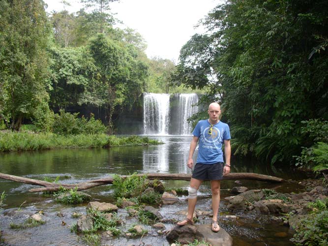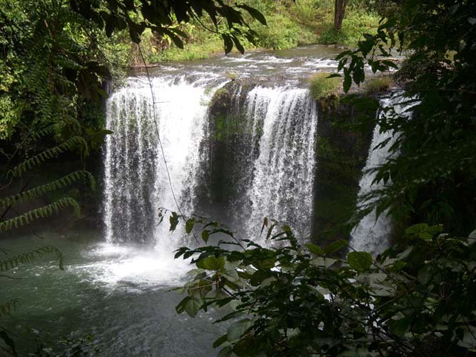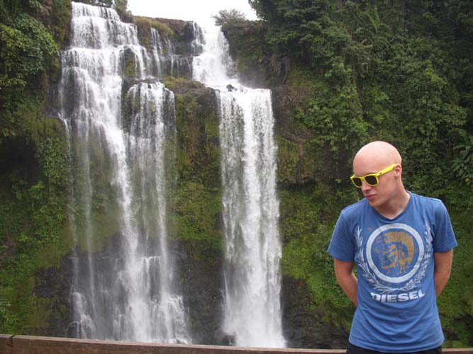 Got up extra early for a mini motorbike trip (can I call them motorbikes with gears, without a clutch John Green?) round the local area. We headed off down route 23 out of Pakse towards Paksong. Along the way we stopped off at 4 different waterfalls, each very impressive in their own way. Jase and Ed had a dip in one, I had to give it a miss due to my knee! We saw the highest waterfall in Laos at 120 M high (in the photos there are 2 defined falls right next to each other). We got back just before dark as our bikes did not have any lights!