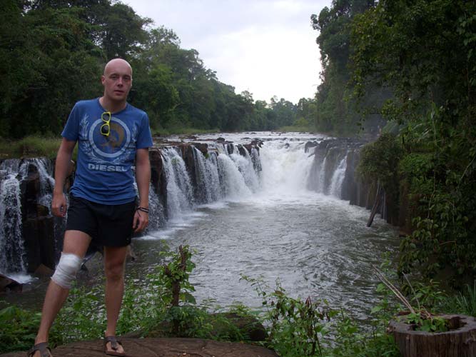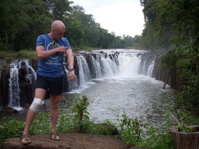 Got a long tail boat across the Mekong river to Don Khon, one of the 4000. Jase played doctor for the 1st time and took great pleasure running iodine through my leg! We had a stroll then decided it was time for an afternoon beer. Nakhon beers all round please! We met up with the English and Auzzies we came from Vientiane with. We attempted to play some drinking games but no one could master the simplest of rules so we gave up and just drank at our own pace.