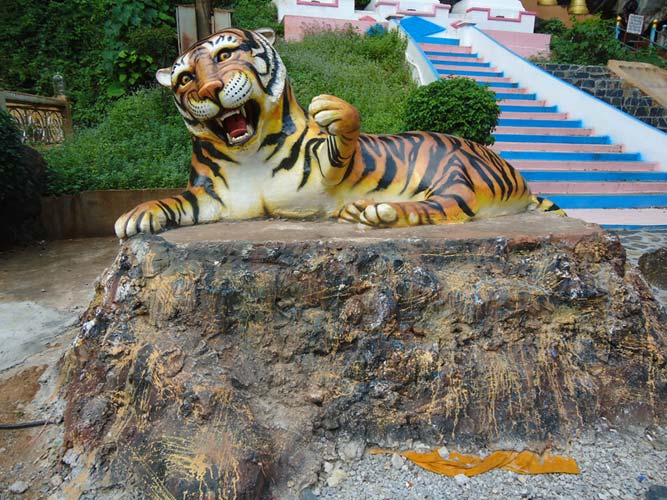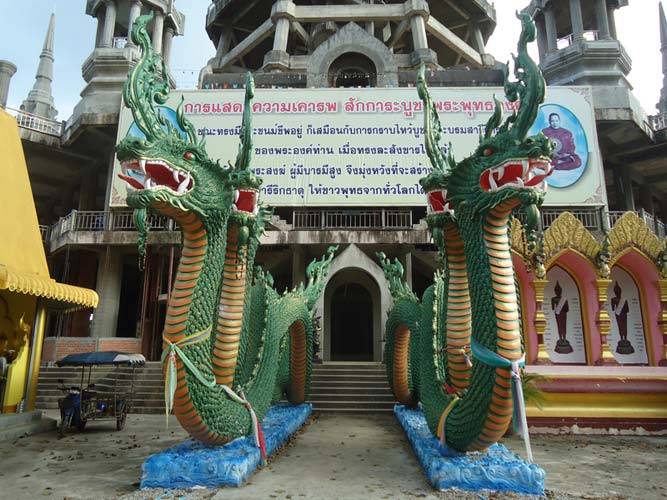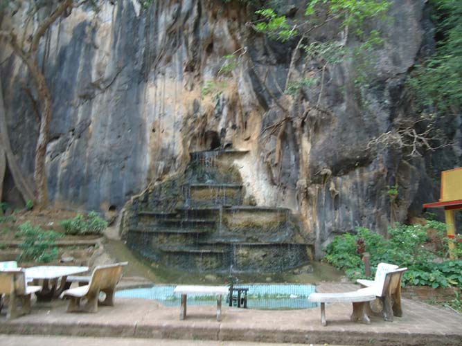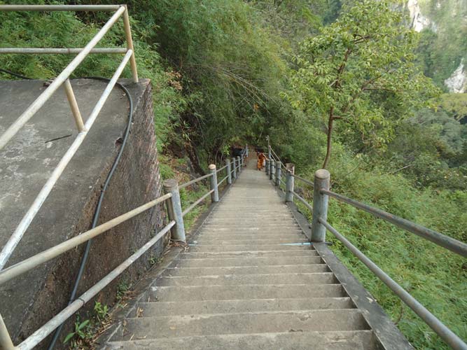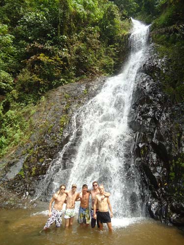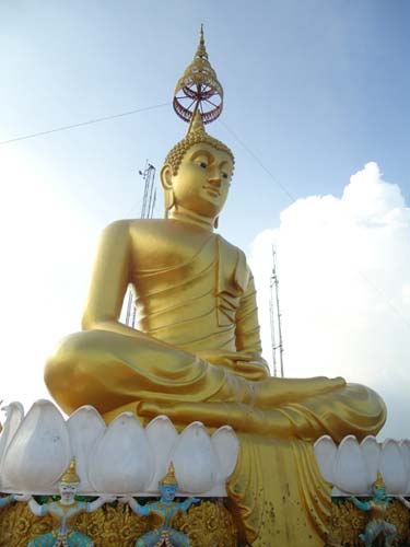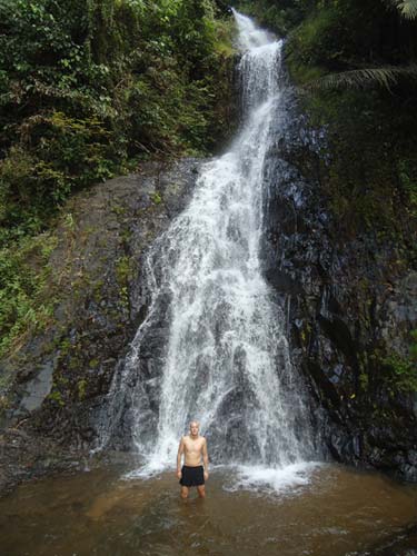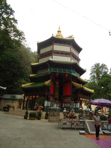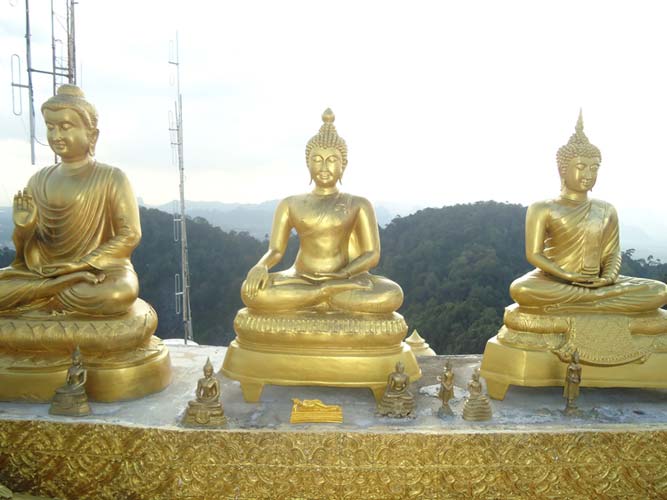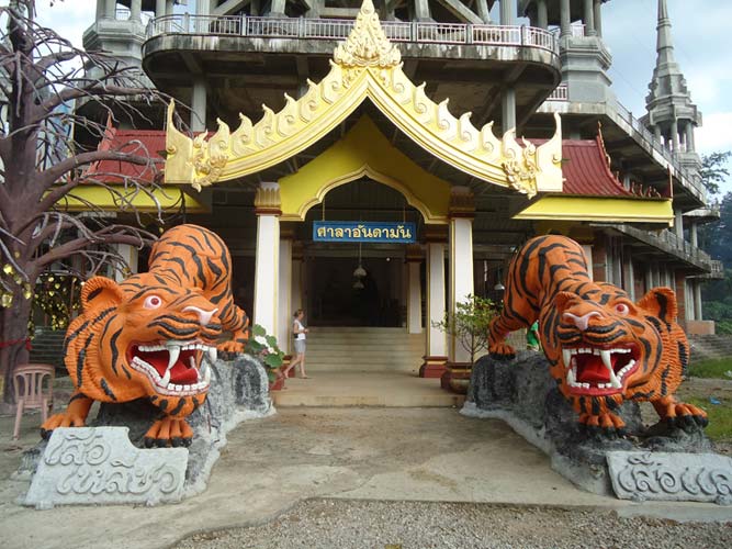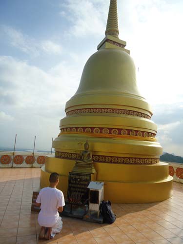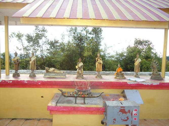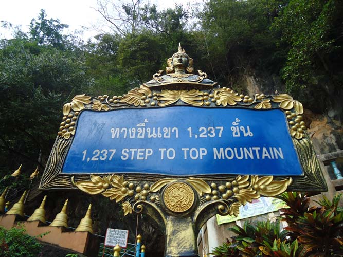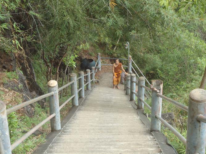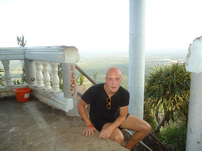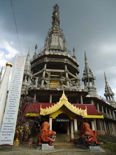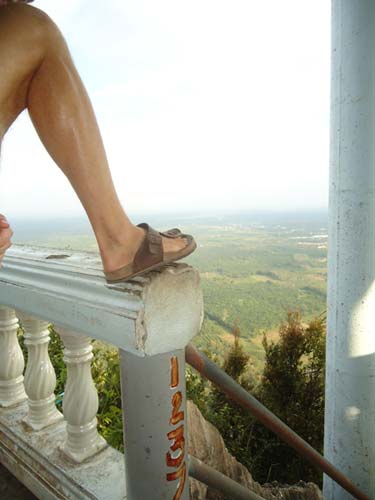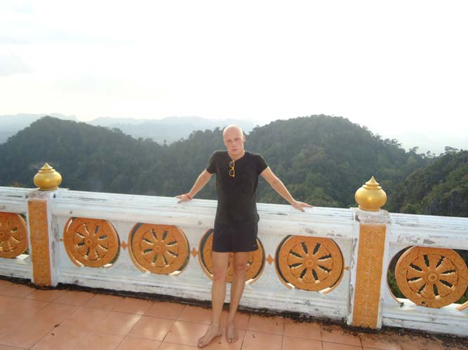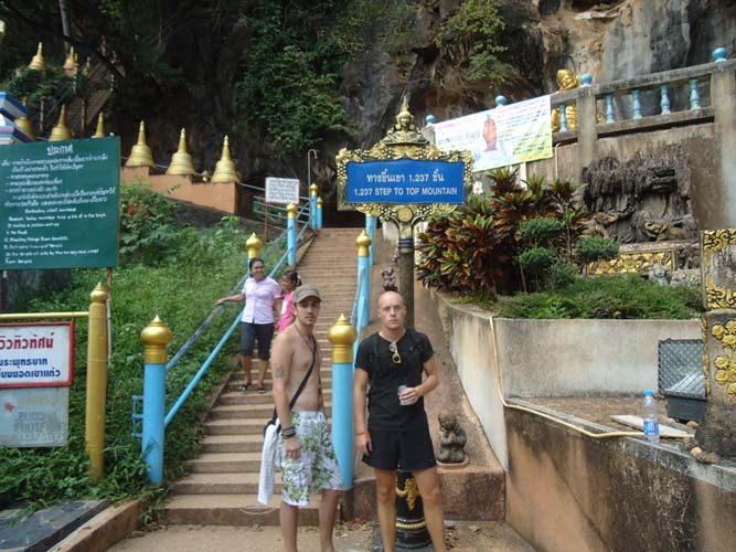 We all hired motorbikes the next day and went to find Huoi Toh waterfall. It was on 3 or 4 levels and cascaded down for about 60ft. We walked up to the top and got some great photos of us in the shallow top pool. We then went further out of town to the Tiger Temple. I kind of expected there to be… well… tigers! There were none. Apart from the two statues in the photos below. The temple was still under construction so it wasn’t the most amazing temple we had seen. But there was another temple to view there, not the tiger temple… but one on the top of a mountain. 1237 steps to the top… easy! Not so easy really, took us quite a while, and as you can see form the picture of me at the top, there was quite a lot of sweat involved! The views from the top were amazing though.
