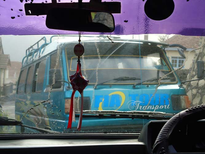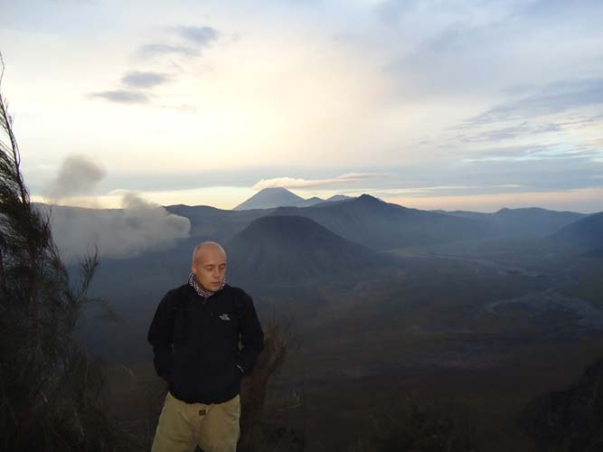 Bus to Bromo took 10 hours, music, read, done. Got to Bromo and booked a volcano trek for the next morning at 4AM! Not again! We got accommodation way up in the mountains and as we stepped out the van realised that everything was covered in ash! Bromo was erupting, and it was no further than a mile from where we were staying! Food, Bed.