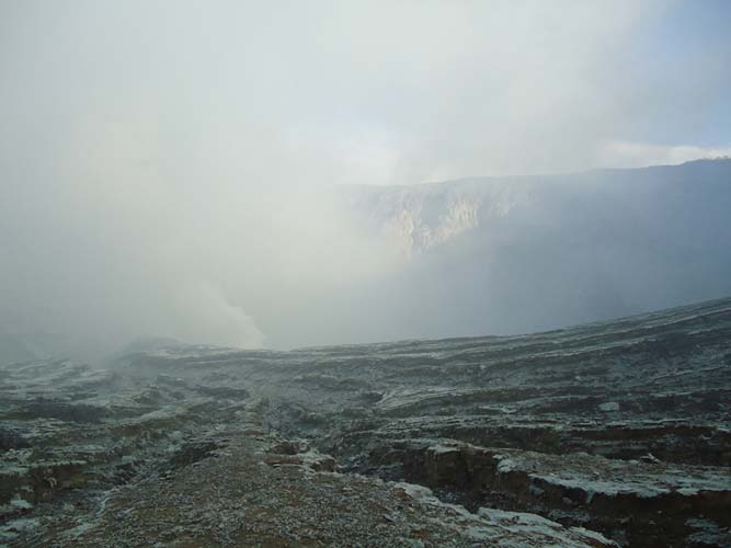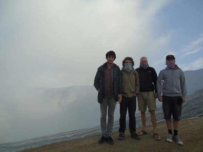 We went half way into the crater after the wind took to sulfur the other way. But it was soon back again and we had to get out as our scarfs were not doing the job.