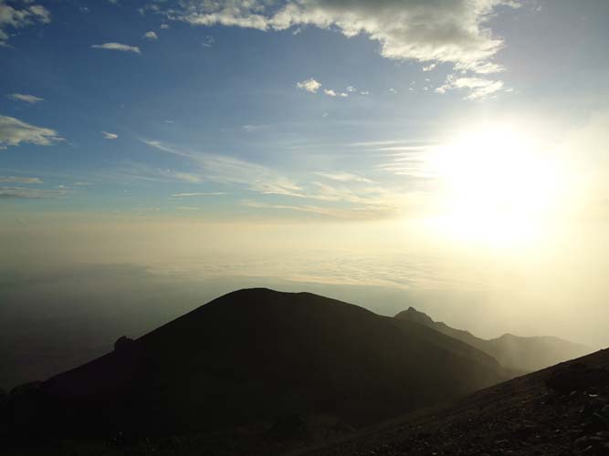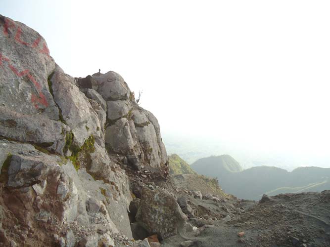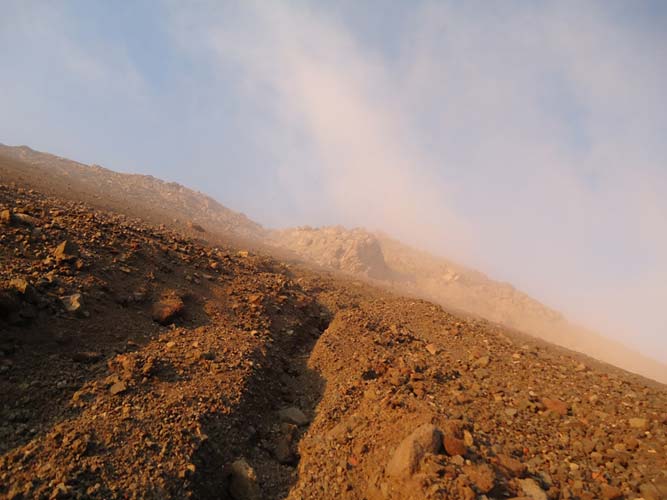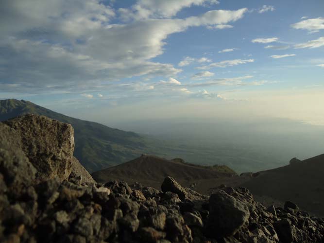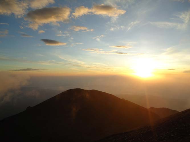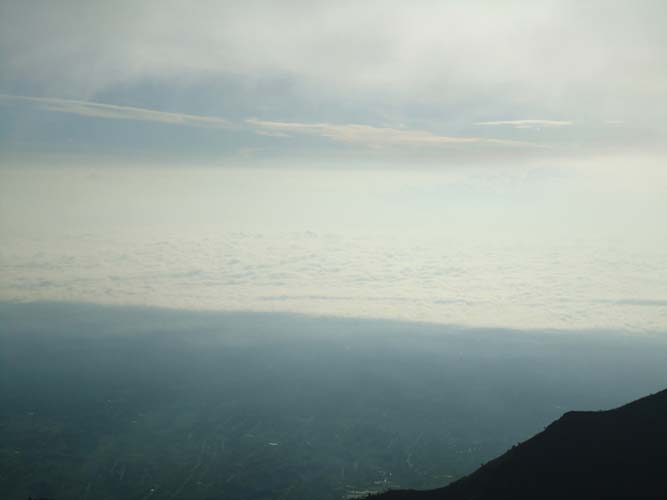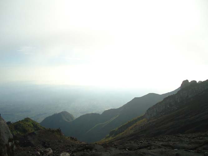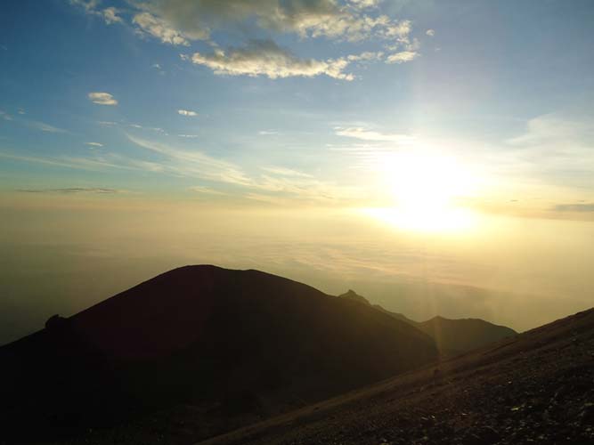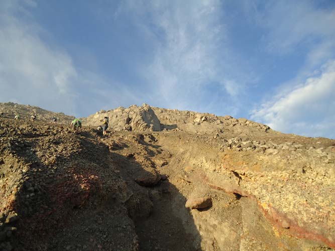 I was short of breath by the time we had finished the 1st 30 minute section and felt sick for the next hour or so. I took it slow but it was very hard work climbing a volcano, with a cold, sweating but freezing at the same time, oh and also, we were in the pitch black of the night. Merapi is still an active volcano and erupted in October 2010 and was still erupting in November 2010! After 4 hours and a 9KM hike up we reached the plateau. Still too dark we had to wait for sunrise and all huddle together for warmth. After sunrise and some spectacular pictures we started our accent to the top. 300M left but it was no longer a jungle trek, but a shear face full of loose volcanic rock.