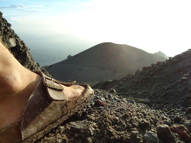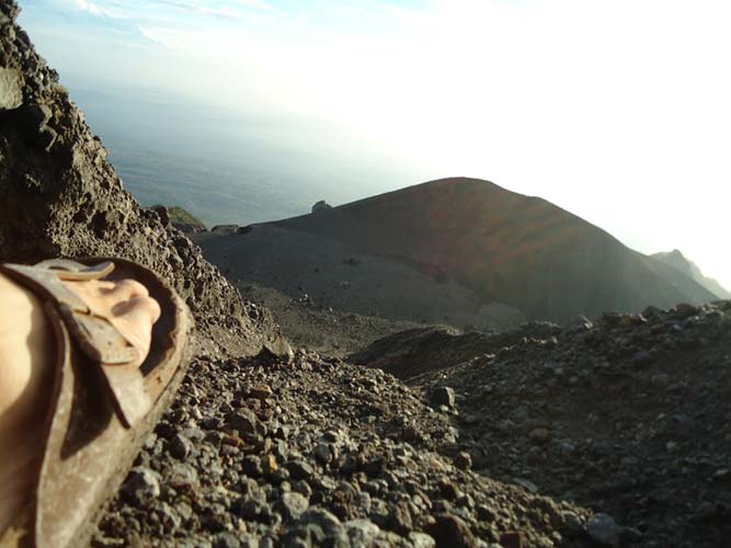 Feeling pretty bad by this point I made it up only 3/4 of the way everyone else did, this is due to me falling down and sliding with the loose rocks down about 20M. My hands, jean shorts and arms were cut up. As the rest began to climb down our guide dislodged a large piece of volcanic rock and it fell towards me at great speed. Unable to get out of the way in time it caught my shin and cut me pretty bad. Everyone above me then had to wait for me to climb down for fear of an avalanche of rocks.