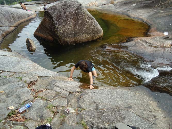 Up late the next day due to the late one last night and got food and went straight out on the bikes. We arrived at a cable car but was closed due to high winds. So we went to Seven Wells Waterfall down the road slightly early. It turned out to be fun and also very funny as Jason’s expense. It was basically a natural water slide and we slid down dropping into a deep pool at the bottom, a hell of a lot of fun. Just as we were leaving Jase dropped his bottle into one of the shallow pools. To retrieve it he went into the waist high water but quickly realised it was deeper than he thought. To keep his t-shirt dry he lifted it up from the water. With his other hand he then swiped for the bottle, slipping on the bottom and going completely under! He popped back up to see me Brogan and Ed pointing and laughing, as were most others there too!
