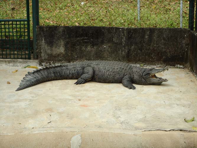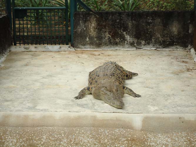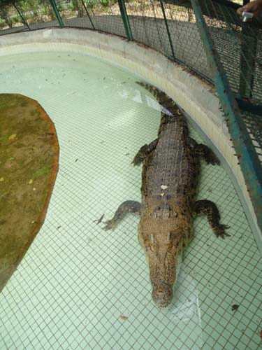 After Jase had dried off we set off to find the crocodile farm that apart from me, nobody wanted to go to! It was exactly what it said it was, a farm, with crocodiles in pens doing… well… nothing. Not moving a muscle. We did see a crocodile show at the end with the guy putting his head inside the crocs mouth. Obviously I took a video hoping to get 250 pound when he removed his body without a head. No such luck but I did get my own squeaky pet croc from the gift shop via Brogan. We rode around the island and then back to town to drop off the bikes.