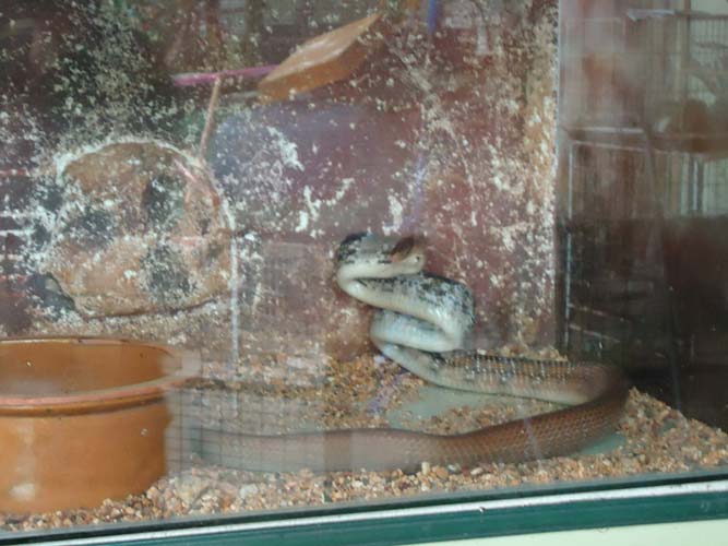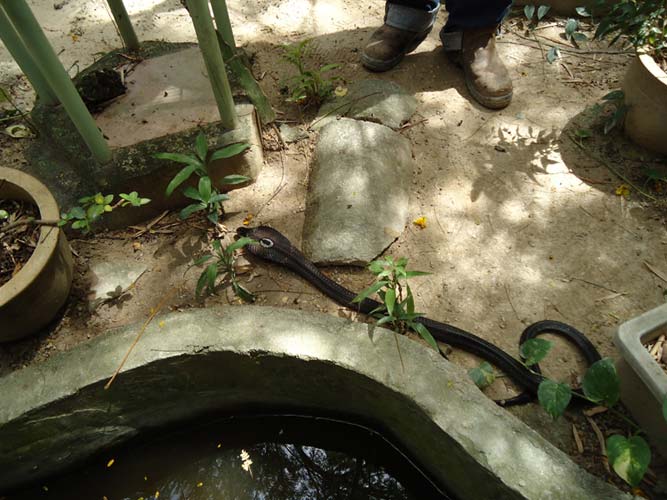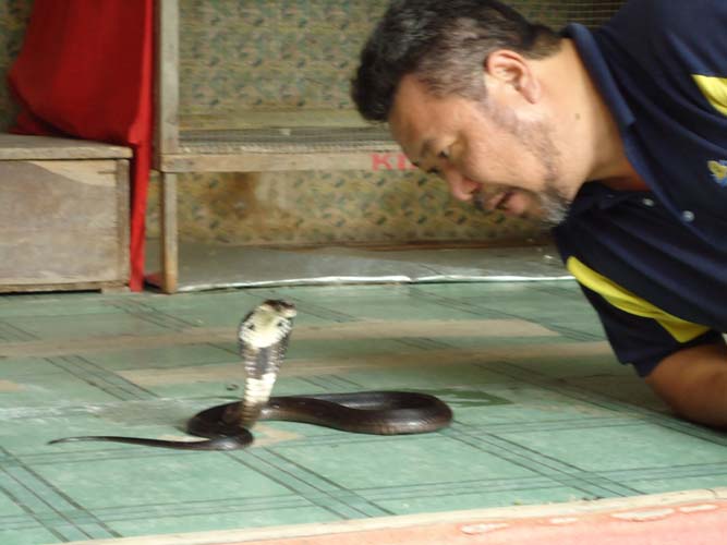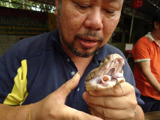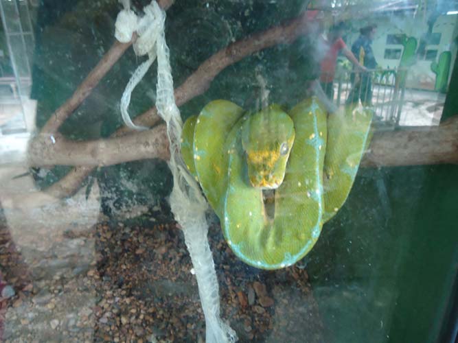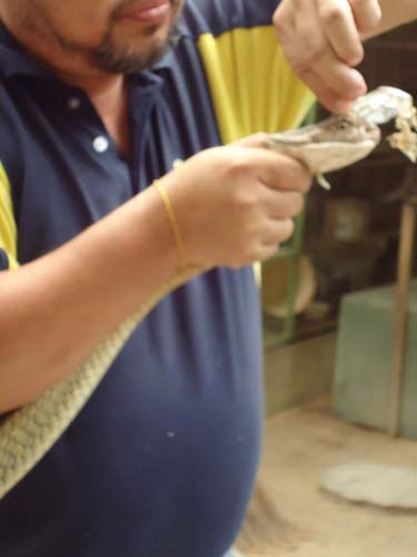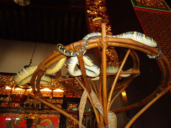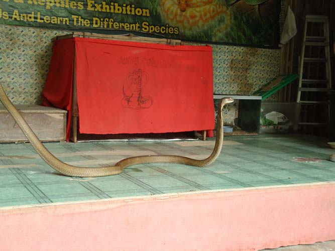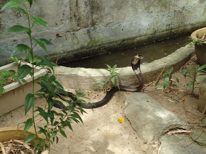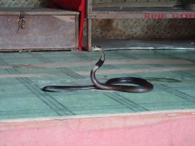 We rented motorbikes the following day to explore Penang. After being shown around a Hindu temple we went to a ‘Snake Temple’ a hundred meters down the road. There were live snakes in the temple, billed as ‘Temple Vipers’ (Sumatran Viper). After a look around the temple we decided to go the the snake farm next door. With everyone’s memorable crocodile affair they weren’t too keen on another ‘farm’ but we all agreed that this one had to be better. It did not disappoint…