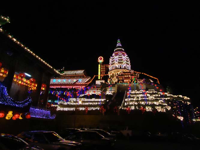 On the night we were recommended to go to a temple just outside of town. On the approach it looked like we had taken a wrong turn and ended up just outside of Georgetown, in Blackpool. On closer inspection we were still in Malaysia and the lit up temple was stunning.