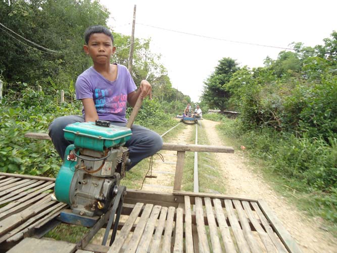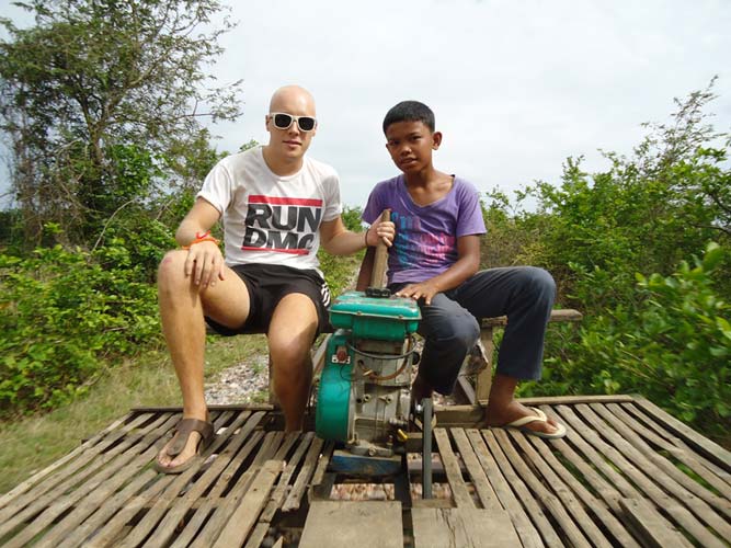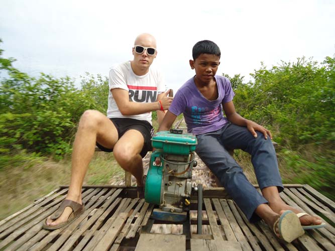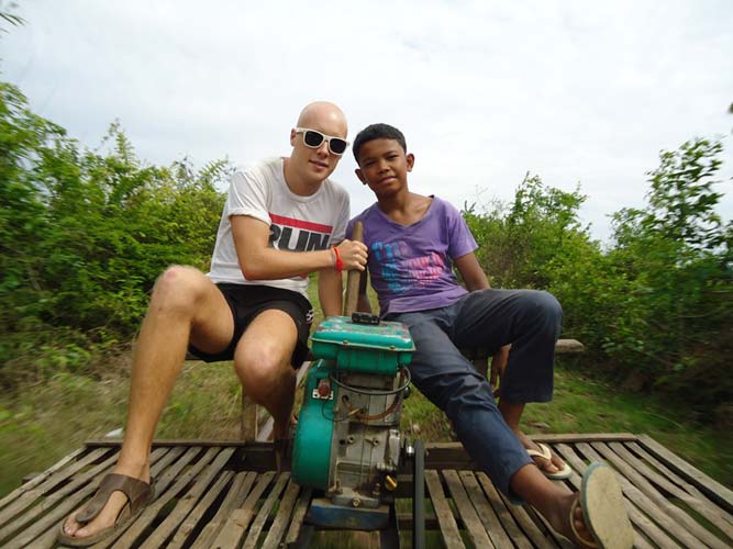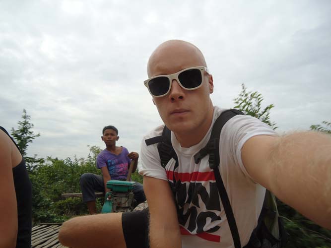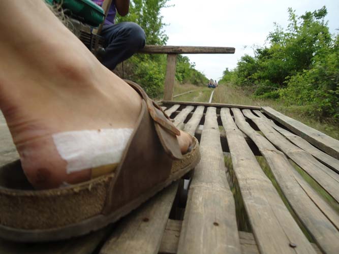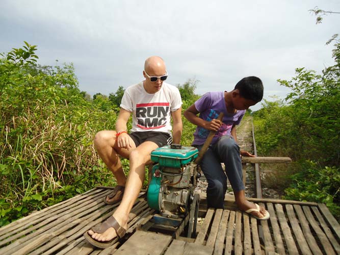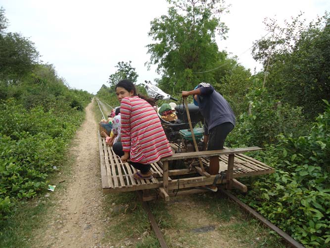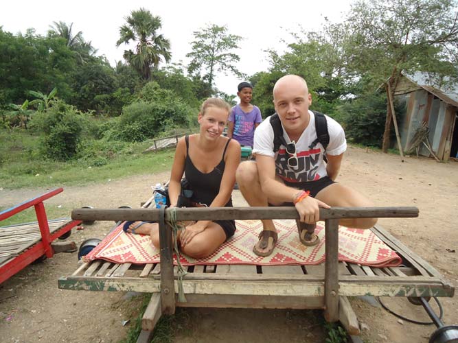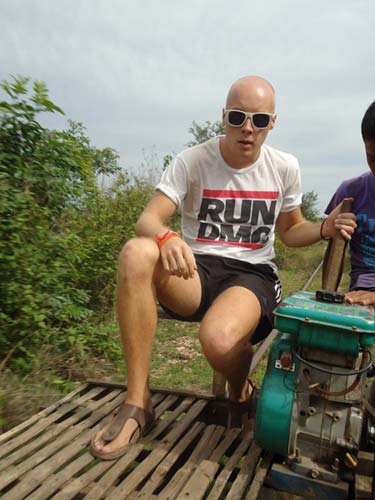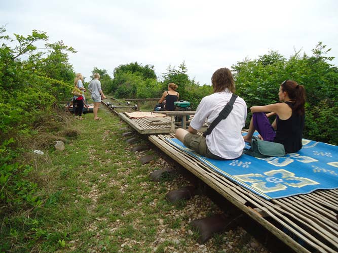 Next morning after brekkie my Tuk-Tuk driver said he had another person to come. So I met Steph (Holland) and we set off on our way to the Bamboo train. We got pushed back to the start twice before actually getting going. Half way down we bumped into another Bamboo train coming at us. Its a single track so they got off. They dismantle the train and then re-build it after we get rolled past! Quite something. After a quick tour of a village we headed back an me and Steph each got to drive the train half way back. I say drive, I mean hold a stick in place so the engine does not fall to pieces!