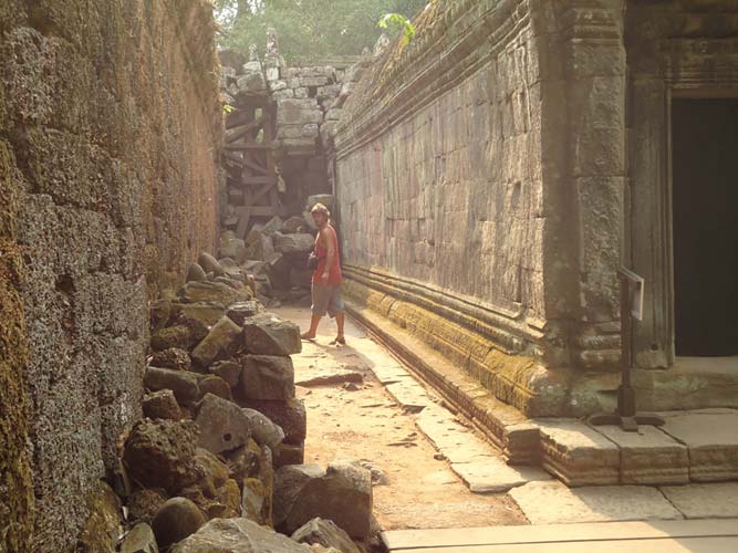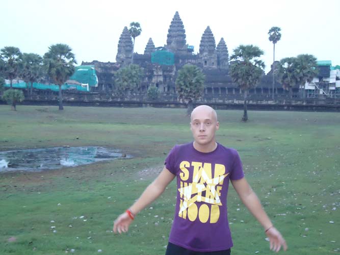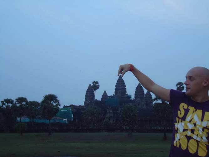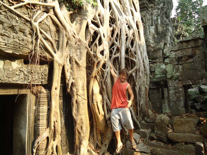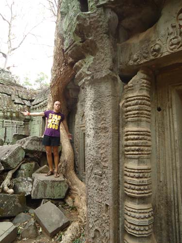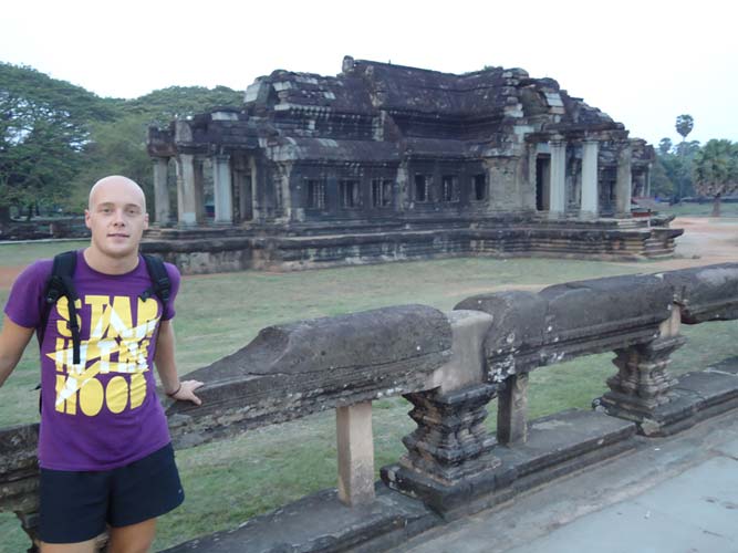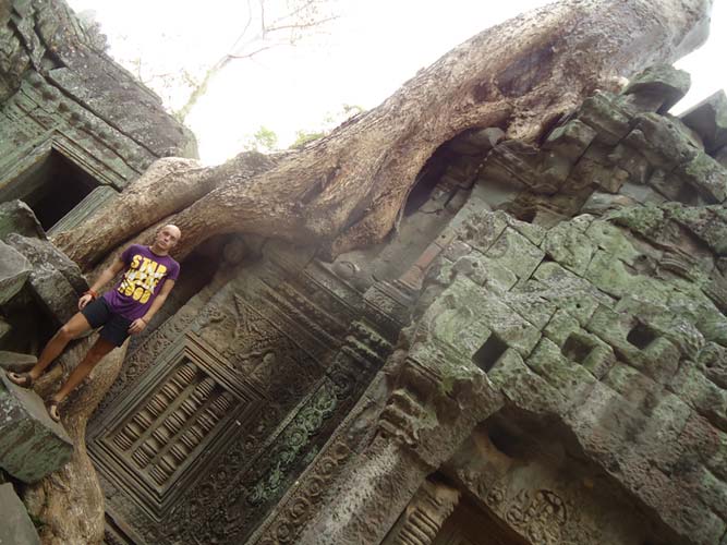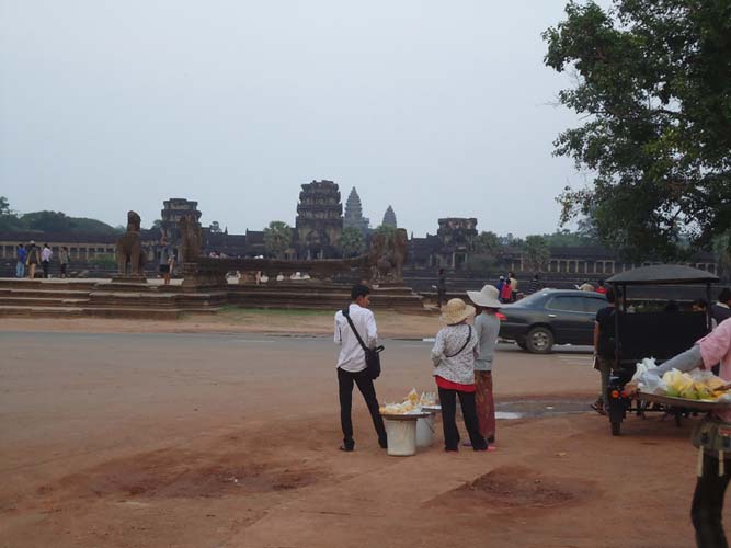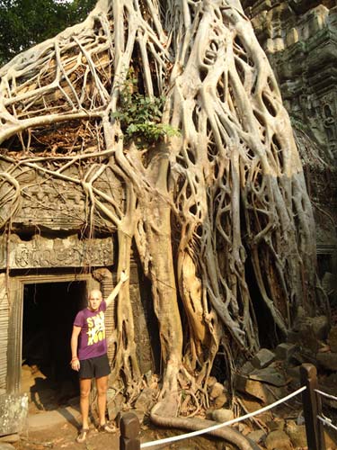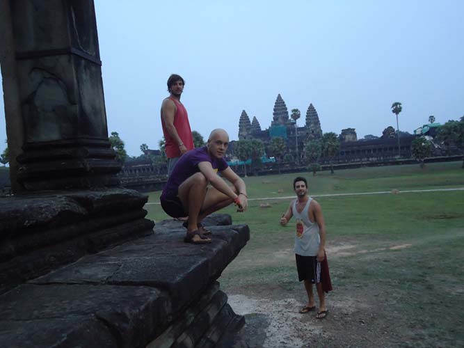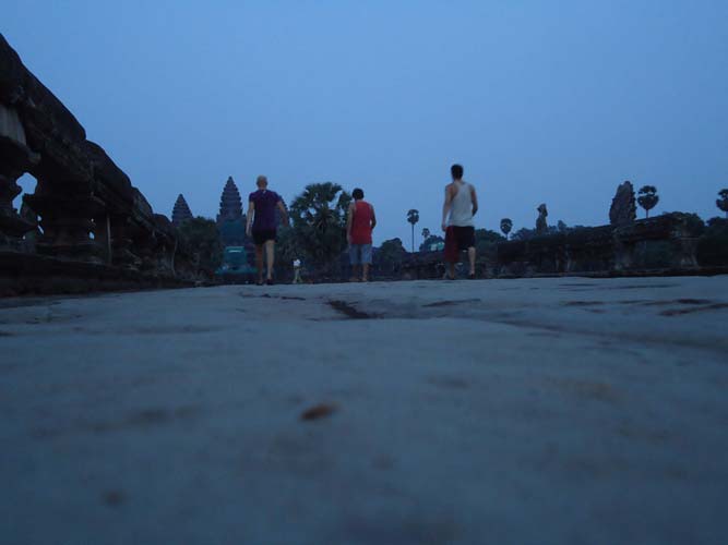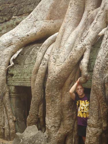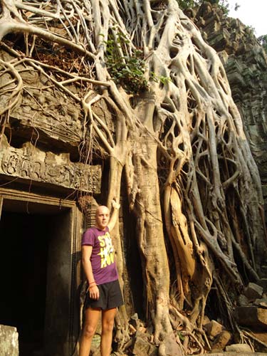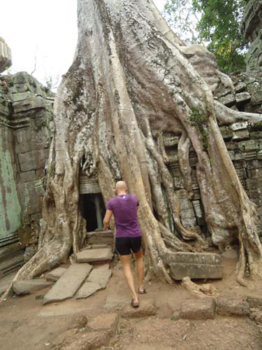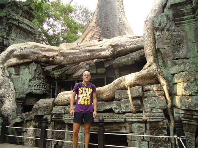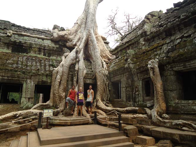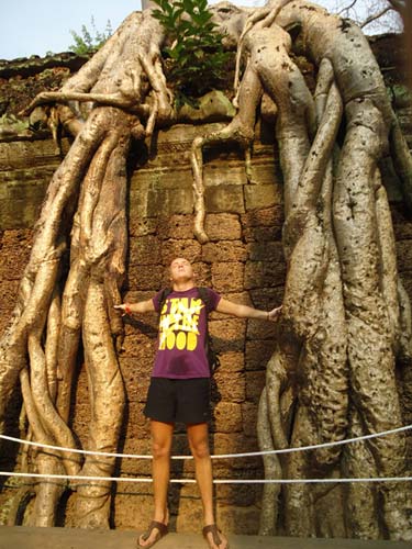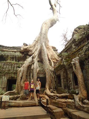 Up late the next day and after getting fed me, Juan and Fran headed to the temples of Angkor. We spent 2 hours walking round the temple that features in Tomb Raider then headed to Angkor Wat to find it closing. We got some good photos from the outside and then headed back to town. Splash of water on the face after a sweltering day and a short walk to the night market. I spent a little too much and lost the Argies haggling. Went for another Lok-Lak and then to bed.