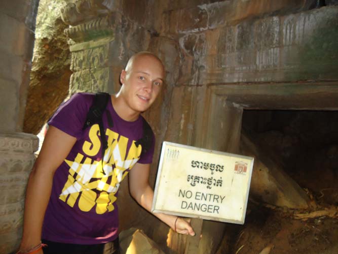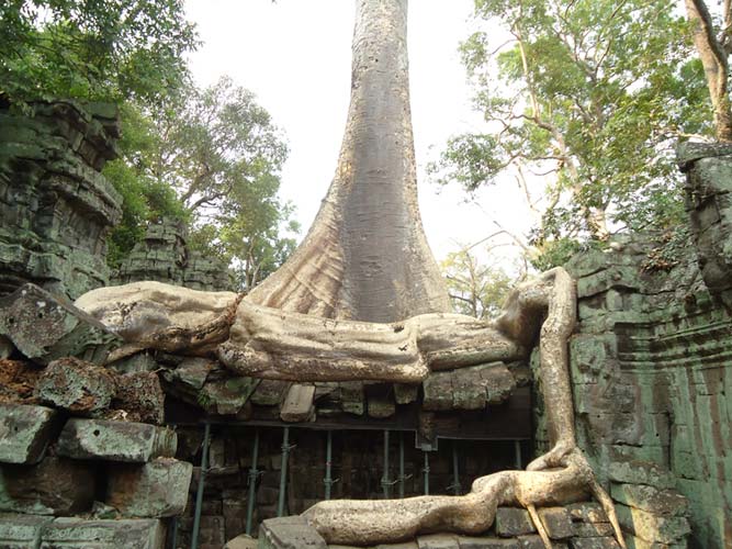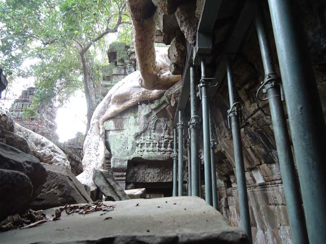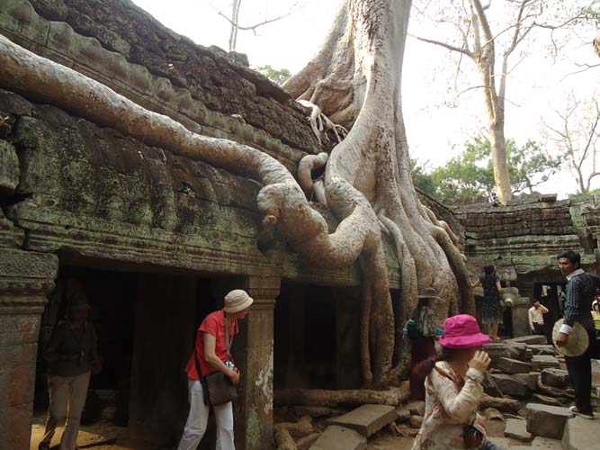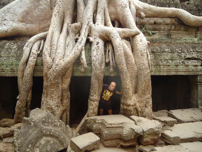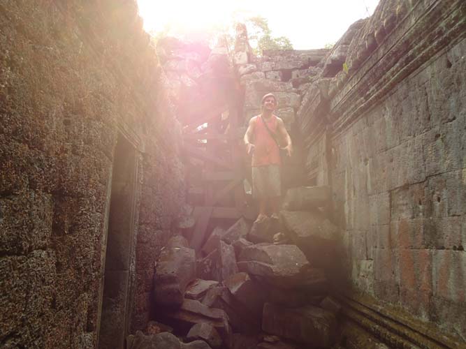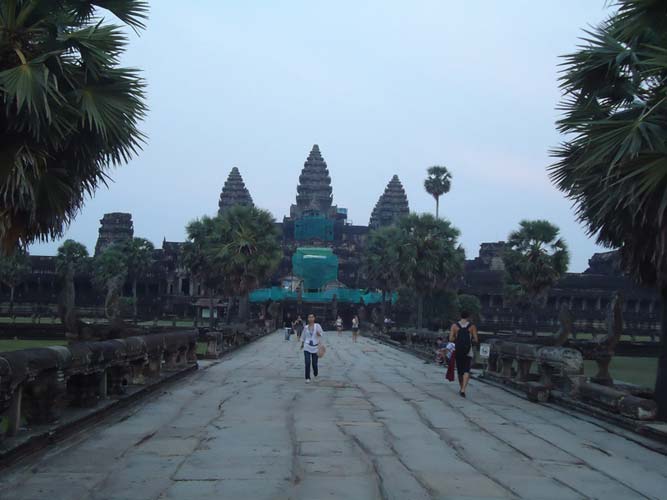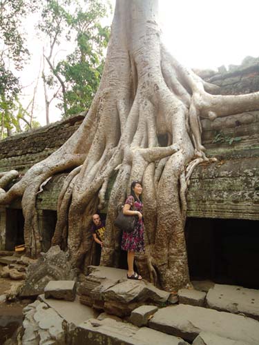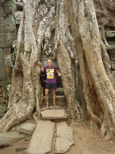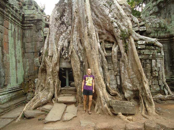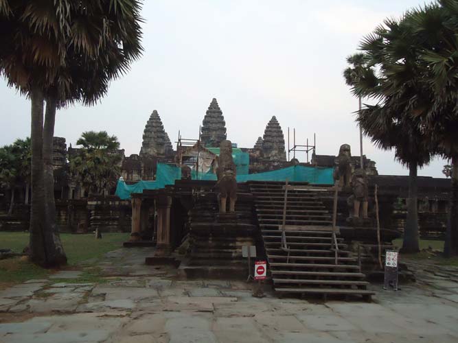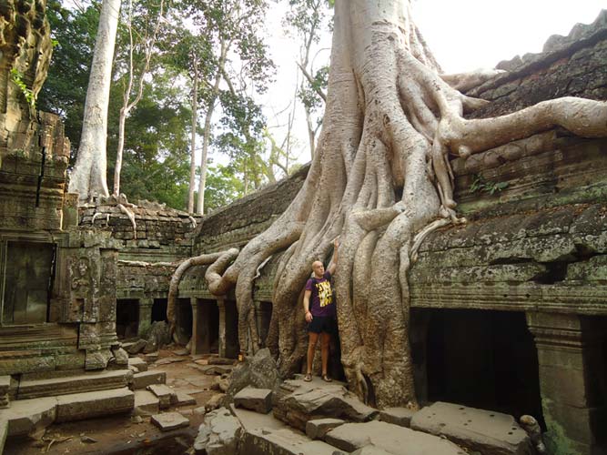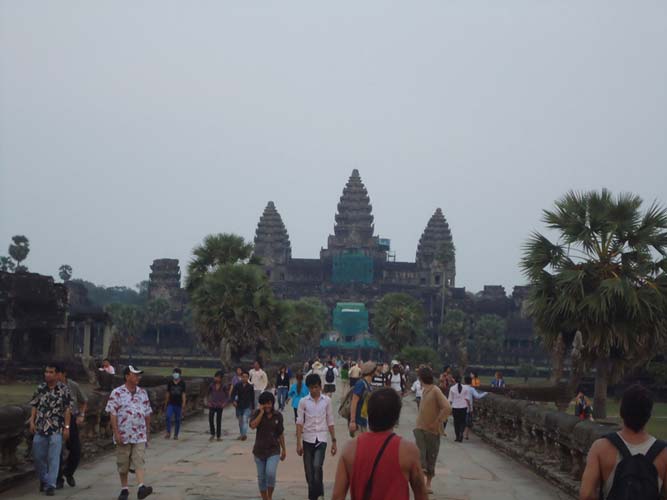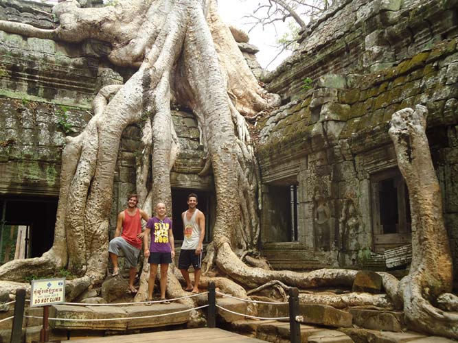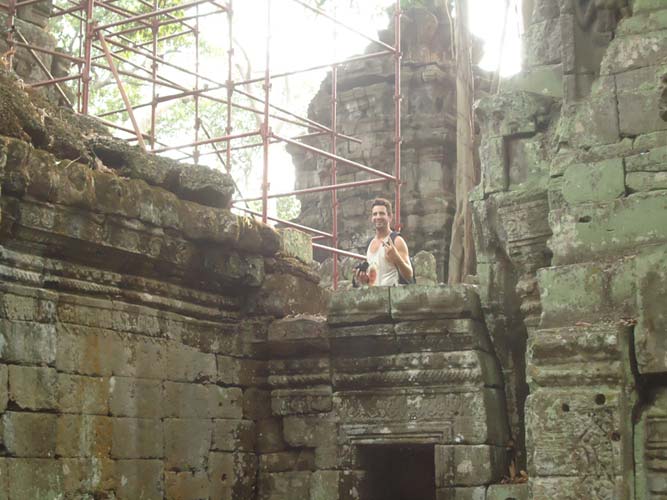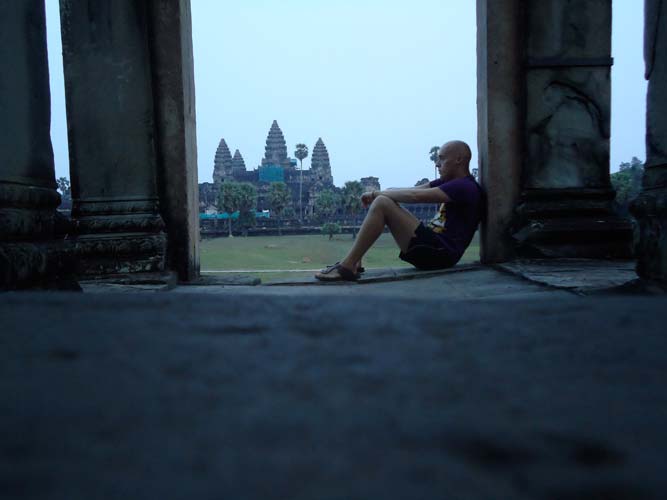 Up late the next day and after getting fed me, Juan and Fran headed to the temples of Angkor. We spent 2 hours walking round the temple that features in Tomb Raider then headed to Angkor Wat to find it closing. We got some good photos from the outside and then headed back to town. Splash of water on the face after a sweltering day and a short walk to the night market. I spent a little too much and lost the Argies haggling. Went for another Lok-Lak and then to bed.