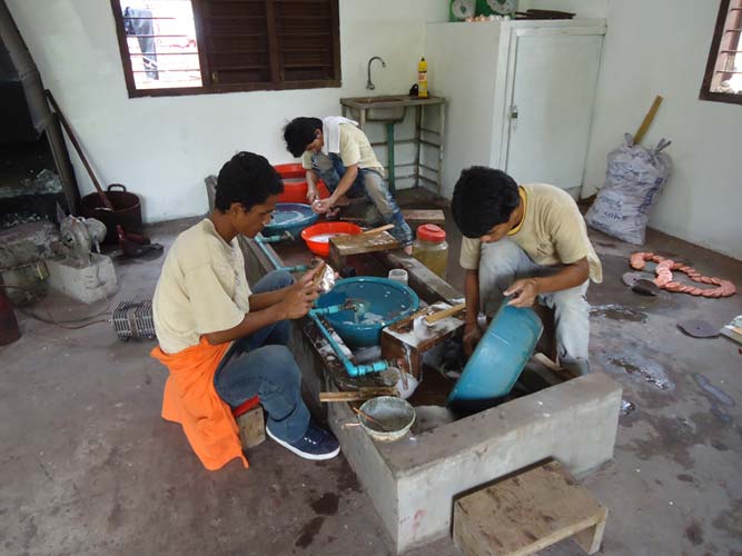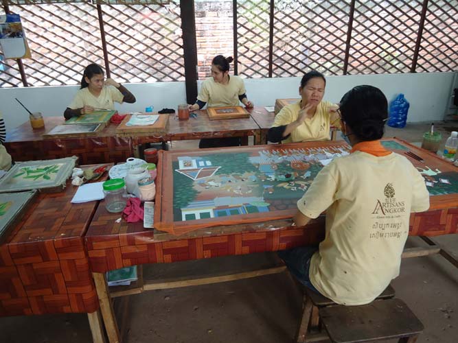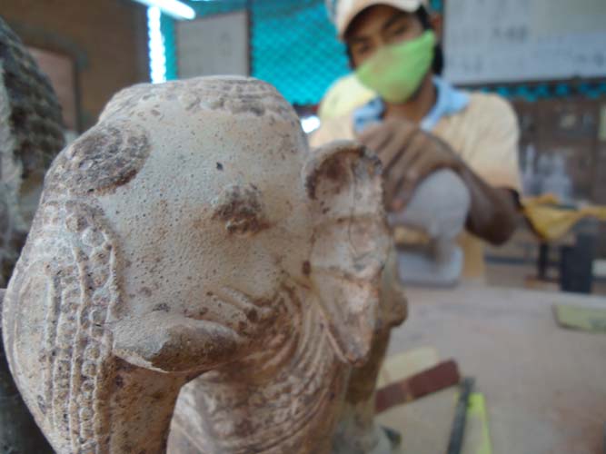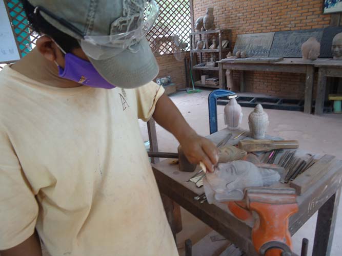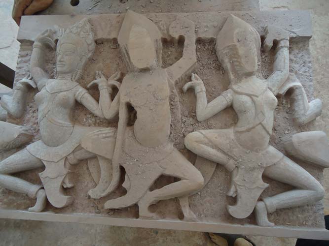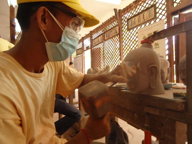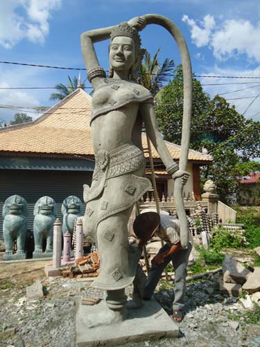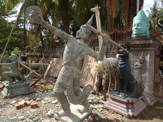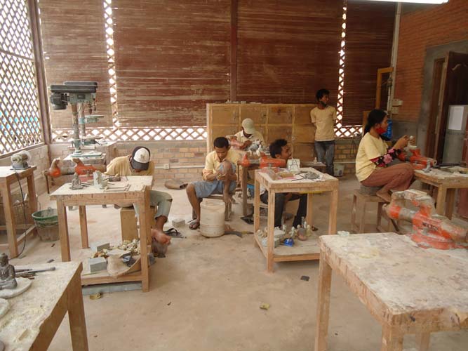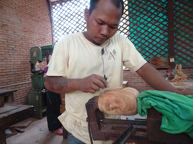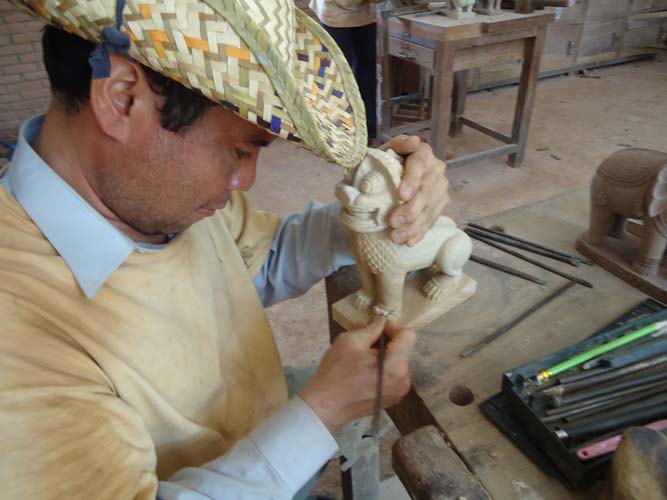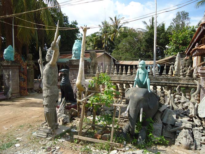My last day in Siem Reap and I got up late once more but with a lot I wanted to see. I rented a bike and found the Artisan Angkor where skilled crafts people make the most amazing sculptures. I then rode the 7KM to The temples of Angkor trying to sneak in with my invalid ticket. They are not as dumb as I thought and I was told to come back at 5:30PM when its free to enter. I rode back towards Siem Reap and after being chased by a barking dog found another arts and craft center. Just as impressive as the last. I got some supplies from a supermarket (suncreme and ice creme!) an then booked my bus to Battambong.