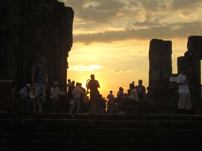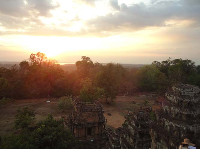 I rode back up to the temples of Angkor but rode a little too fast, so I got there with an hour to kill. I sat talking to the Cambodians of the gate for 45 minutes and they let me in early. I watched another amazing sunset and got some great photos. I rode back to town and got some amazing noodles and pork. Pub Street’s food was amazing to say the least.