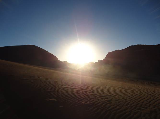 The landscape, although baron, was quite impressive as the sun reflected off the sand turning the whole valley red. Cycling back in the pitch black after the sun had set though was a different type of thrill. This time we were coming down the hills, with only a head torch to light the way it was quite a lot of fun hitting a 90 degree bend at 40KMPH.