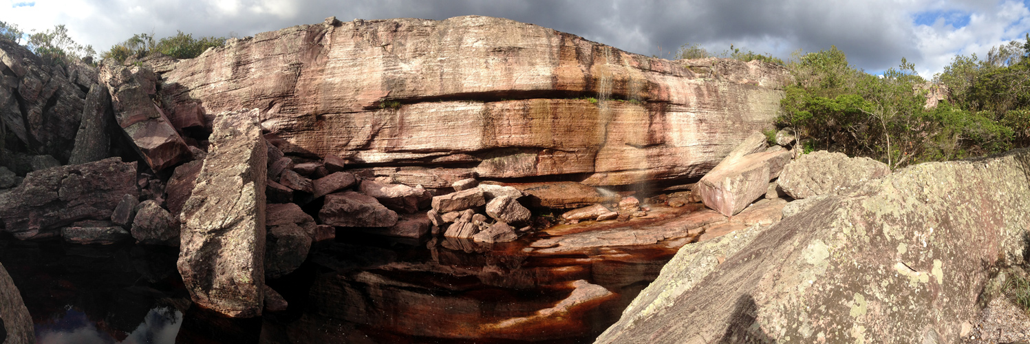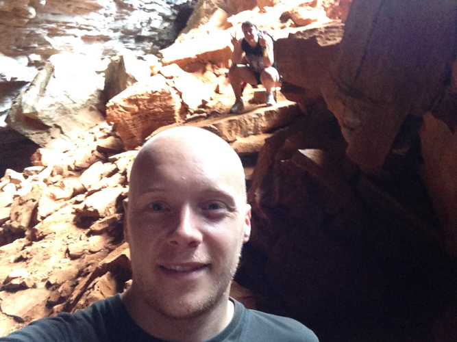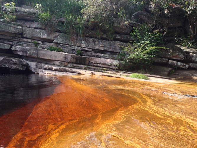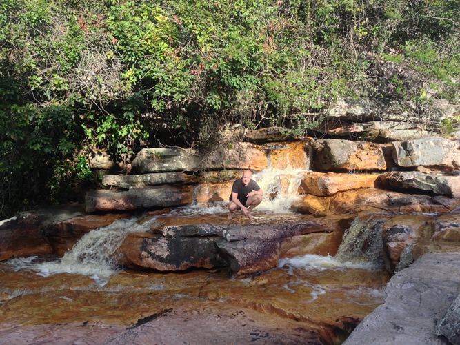 We made it to the bottom after climbing down the rocky terrain to find the clear water tinted brown from all the iron in the rocks (so I’m told).