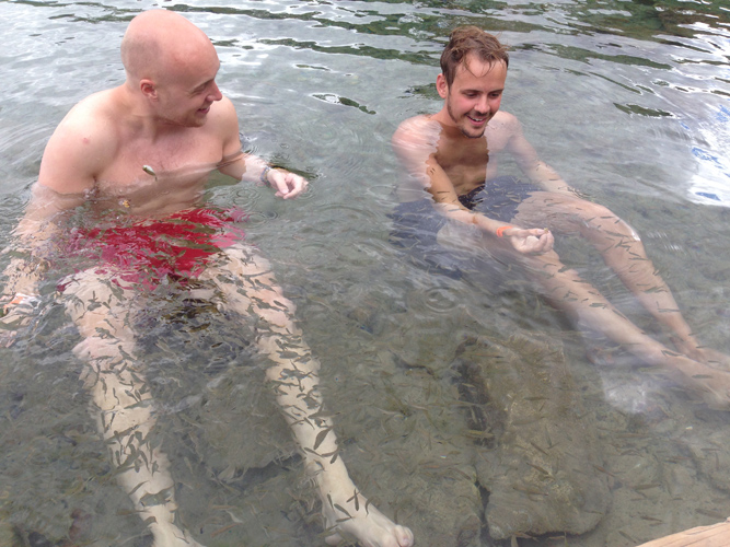 So you heard it here first, the cure, or part of the cure, for a hangover is freezing cold water. Mads and I jumped in and explored the cold pools to escape the sun beating down while Brogan and Camilla chilled outside of the water.