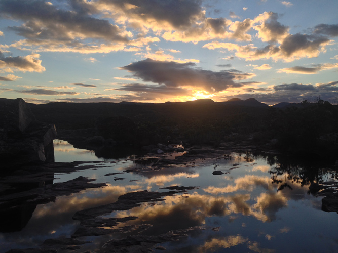 On the way back to the first waterfall we were treated to another amazing sunset over the hills which were a lot closer than the day before. It was set off with a reflection of the sky in a pool right in front of us.