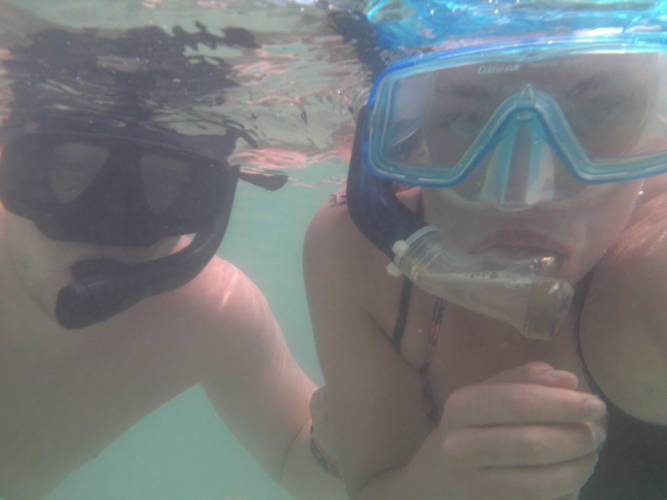 At one point we were surrounded by some black and yellow fish, Sergeant Majors, that followed us everywhere we swam, which of course Brogan began screaming. I, on the other hand, was loving life.