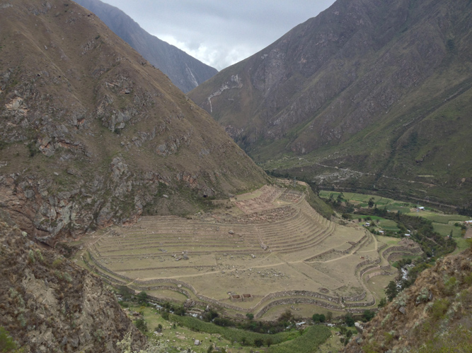 The scenery was stunning walking though the valley next to the river and we were on our easiest day so took it all in. We saw our first ruins site and had a history lesson about how they built them to match the exact meanders of the river. There were also some farming sites up on the sides of the mountains that looked near to impossible to reach but we were assured they used them each and every day.