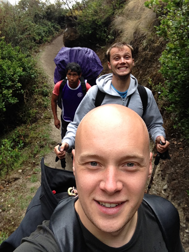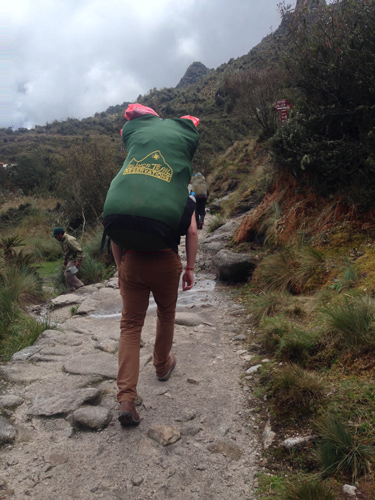 So after lunch on the 3rd day we were all asked if we wanted to take the porter challenge. 3 of us decided we wanted to do it so were told the rules. We had to swap our bags for theirs and walk on ‘Inca flat’ for 10 minutes and we would win a free Pisco Sour (the national drink) at the next camp. My bag weighed in at a measly 6KG, Eduardo’s bag weighed in at almost 35KG. Oh and the Inca flat was a load of bullshit, it was all up after a small flat from camp!