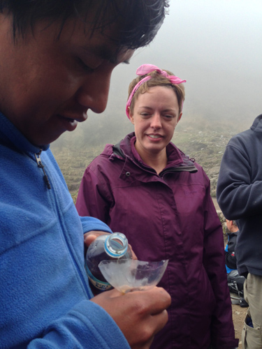 By the time we reached camp on each and every day the tents were already set up by our porters and the dinner was well under way for us to enjoy great food together. We played a Peruvian version of Wink Murder in our own little ’tea party’ before dinner which was entertaining to say the least. The food was unreal and how they managed to carry all of the different things we eat for 16 trekkers, 2 guides and 16 porters for 4 days I will never know!