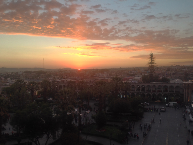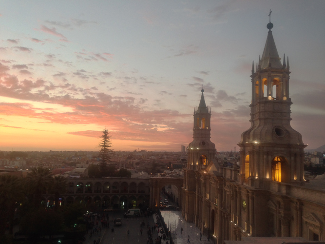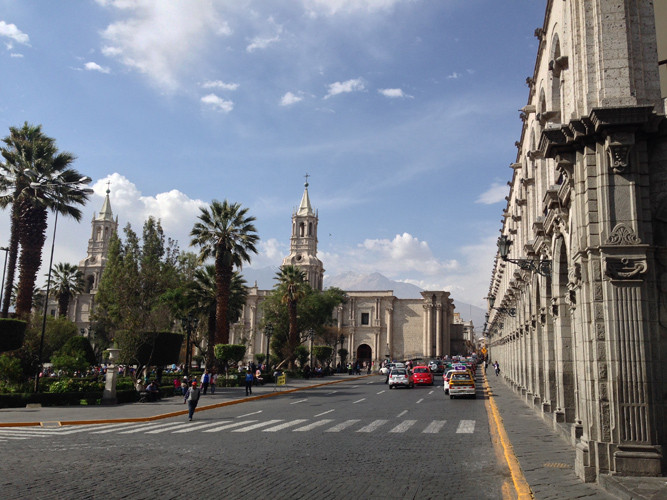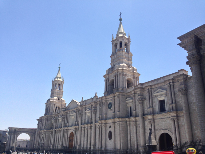 We started off in the main Plaza de Armas which is a beautiful centre to the city. A huge cathedral on the north side towers over the rest of the plaza with its huge bell towers. The plaza was lined with some bars and restaurants which if you went to the 3rd floor you could get an amazing view of the plaza and a good chunk of the city including the El Misti volcano.