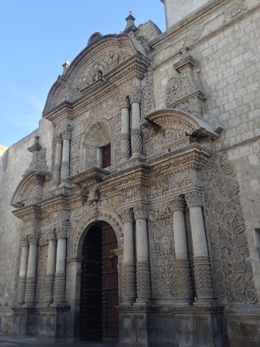 We continued round the city to see some of the great architecture most of which was carved from volcanic sillar rock in the historic centre. The quality of the carvings to the front of some of the buildings is amazing. A lot of the carvings have a mix of European, Andean and indigenous meanings with crests, condors and faces representing different things.